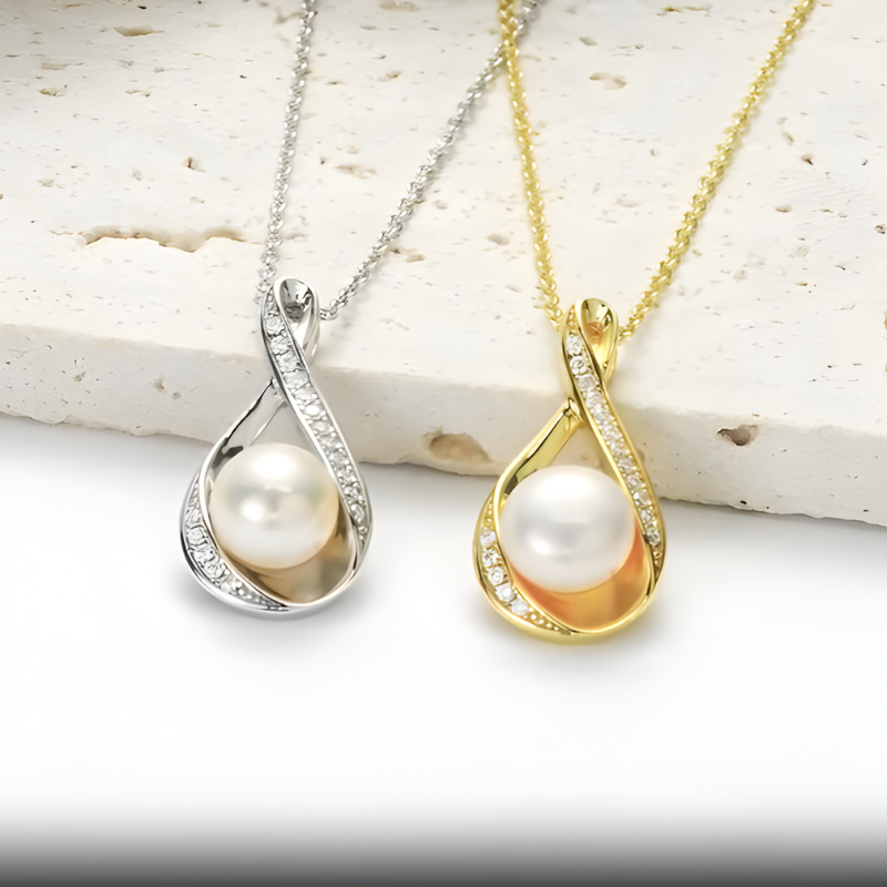 Pearl & Moissanite Set - Gold Plated Sterling Silver - Love's Endless Bloom