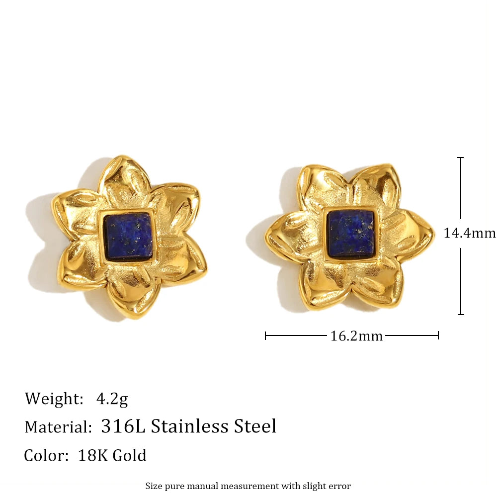 Waterproof Blue Flower Necklace and Earrings Set – 18K Gold Plated