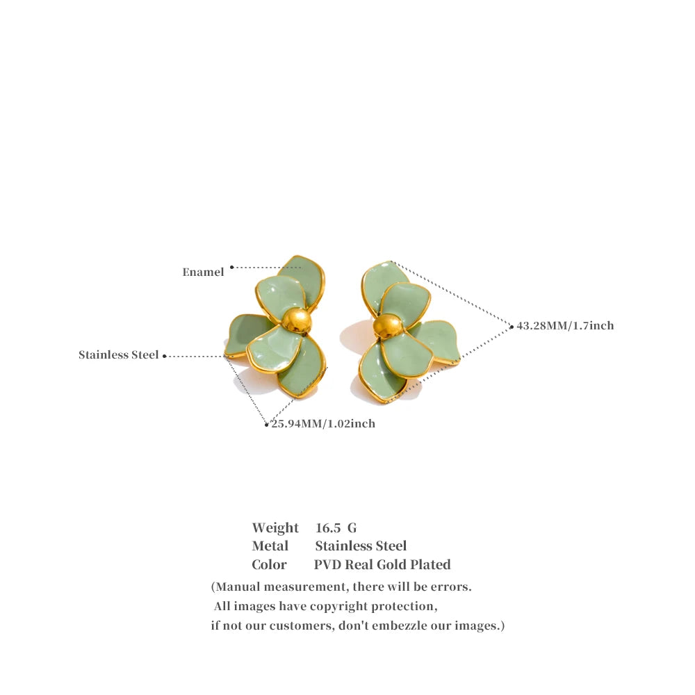 Add a touch of spring and summer charm with the Waterproof Pastel Petals 18K Gold Plated stud earrings. Featuring delicate enamel petals in soft pastel hues of green, ivory and pink, these earrings brighten your look with nature-inspired elegance. Perfect for casual days or special occasions, they combine vibrant design with the durability of waterproof, tarnish-free jewelry.